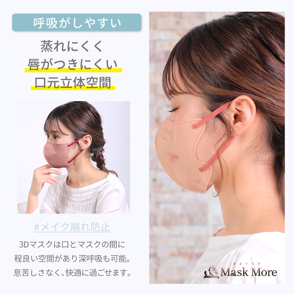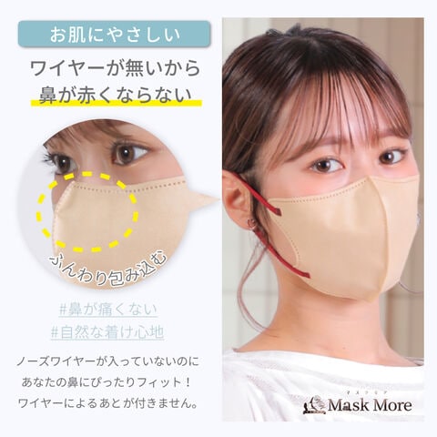 [MaskMore] マスクモア 3Dマスク 不織布 立体 不織布マスク 立体マスク 小顔マスク 面長タイプ バイカラー おしゃれ カラーマスク マスク 花粉症対策 サンドベージュ 20枚入り