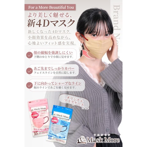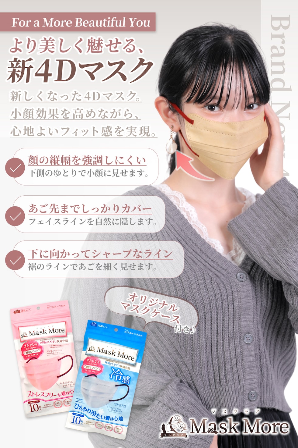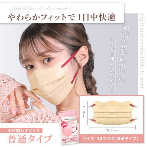 [MaskMore] マスクモア 3Dマスク 不織布 立体 不織布マスク 立体マスク 小顔マスク 面長タイプ バイカラー おしゃれ カラーマスク マスク 20枚入り サンドベージュ