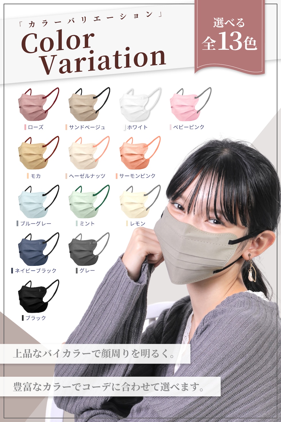 [MaskMore] マスクモア 3Dマスク 不織布 立体 不織布マスク 立体マスク 小顔マスク 丸顔タイプ バイカラー おしゃれ カラーマスク マスク 20枚入り サンドベージュ