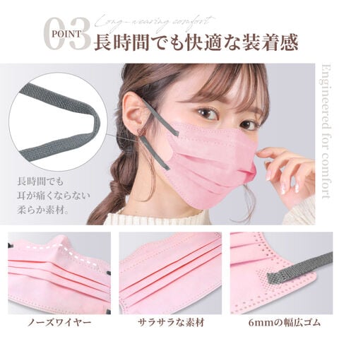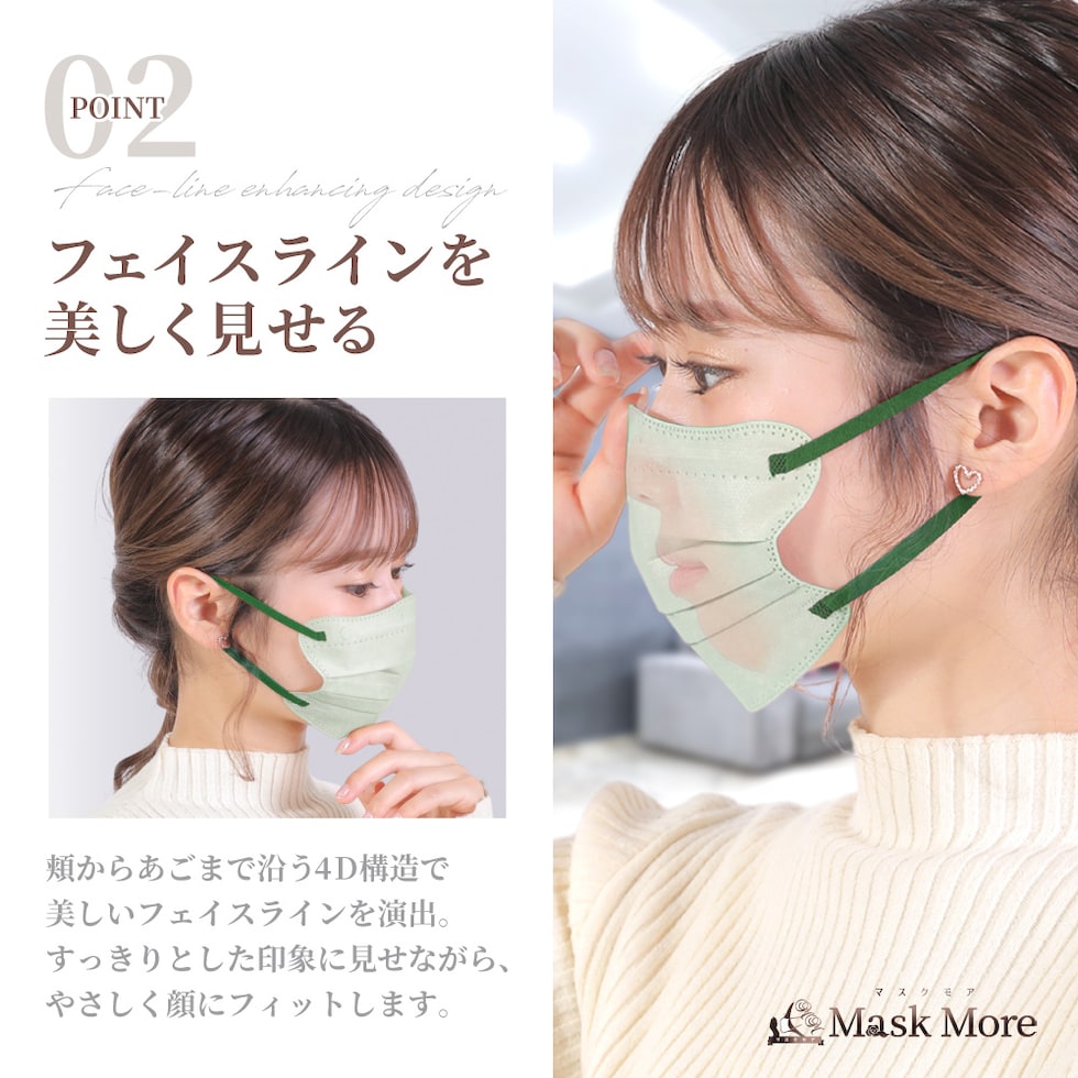 [MaskMore] マスクモア 3Dマスク 不織布 立体 不織布マスク 立体マスク 小顔マスク 面長タイプ バイカラー おしゃれ カラーマスク マスク 20枚入り ピュアホワイト
