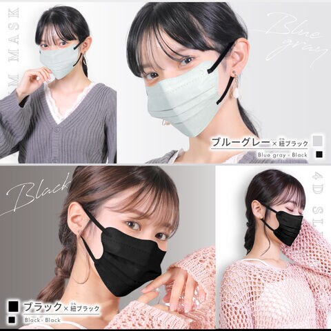 マスクモア 4Dマスク 冷感マスク 不織布 不織布マスク 立体マスク 小顔マスク くちばし バイカラー マスク 改善版 おしゃれ 三層構造 小顔 カラーマスク 20枚 ブルーグレー