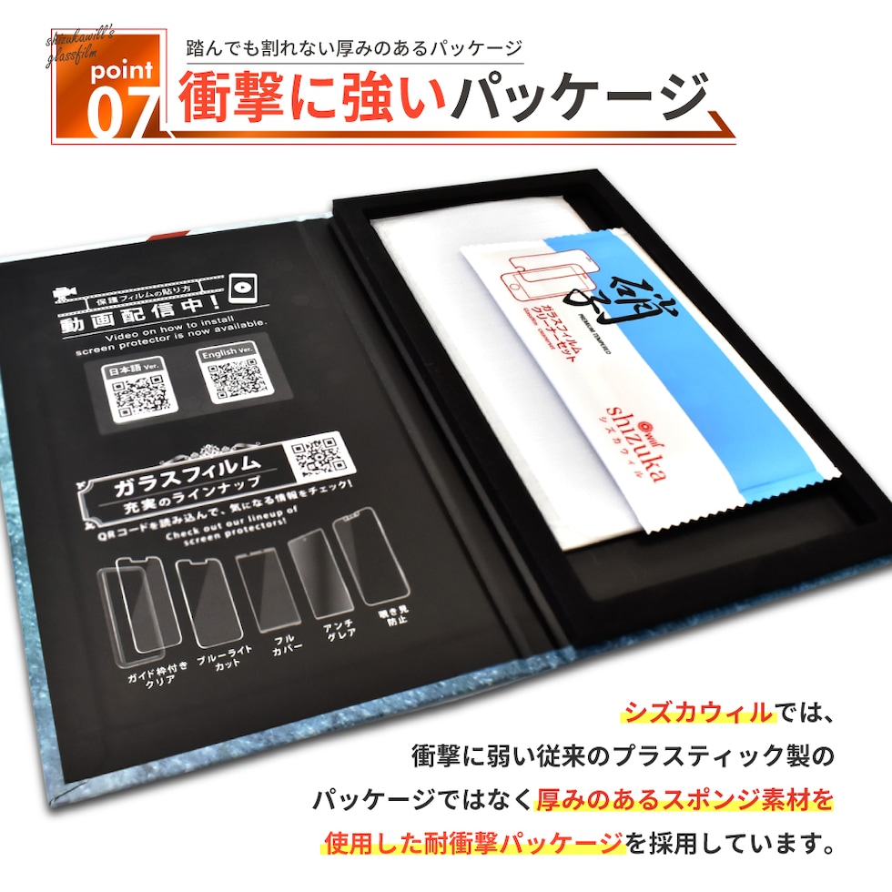 仕様:硬度9H・指紋軽減・飛散防止・付着防止・防汚・耐傷性