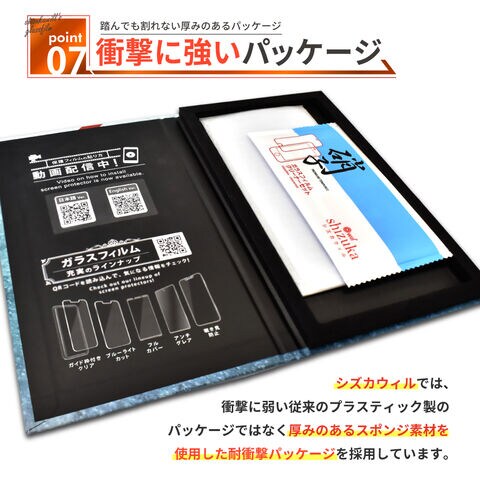 仕様:硬度9H・指紋軽減・飛散防止・付着防止・防汚・耐傷性