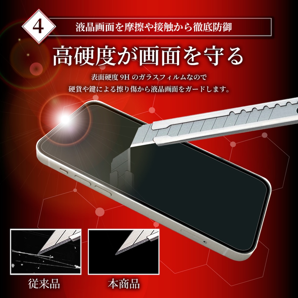 表面硬度9Hにより傷がつきにくく、厚み0.3mmのガラスが