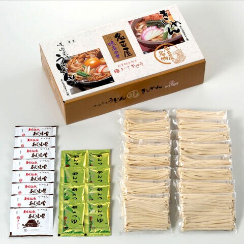 ●半生きしめん 100g×8、めんつゆ 25g×8、半生うどん 100g×8、味みそ 45g×8