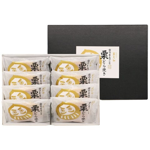 ■柔らかい栗がまるごと1つ入った、可愛らしいどら焼きです。やさしい甘さの国産つぶ餡が、栗の美味しさを引き立てます。