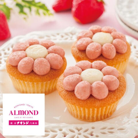 ■あまおう苺とホワイトチョコの2色のチョコクリームを、お花の形にトッピングした可愛らしいカップケーキ。東京の老舗菓子店「六本木アマンド」監修。