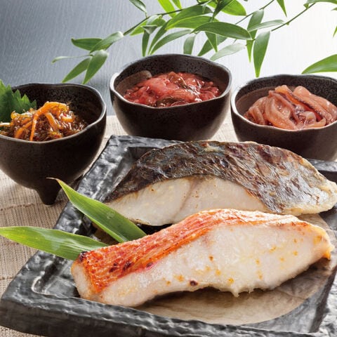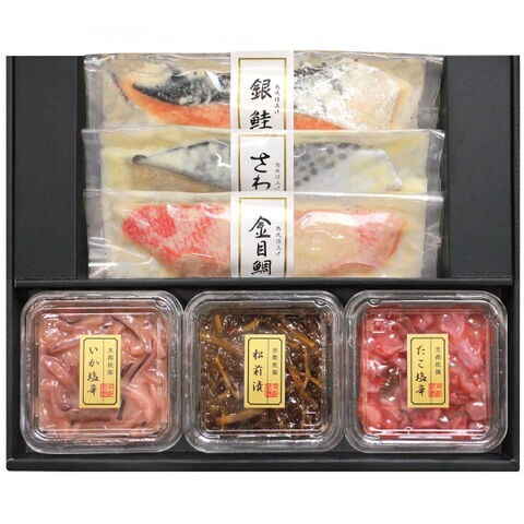 ●さわら・金目鯛・銀鮭各60g×各1、松前漬・たこ塩辛・いか塩辛各50g×各1