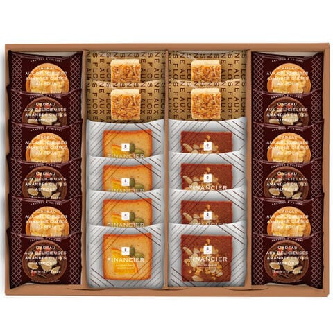 ●フィナンシェ(オレンジ・キャラメルアーモンド)・フロランタン×各4個、タルト(ブラウニー・ホワイトブラウニー)×各6個