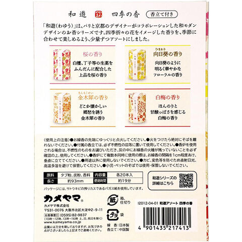 カメヤマ 和遊アソート 四季の香 I2012-04-01 送料無料 (メール便/同梱不可)【 お試しサイズ 線香 部屋香 】_