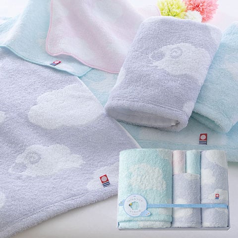 ■まるで雲のような、ふんわりとした柔らかさが特長のタオルです。糸の撚りをゆるく「甘撚り」した、通常の糸より柔らかい糸で織り上げています。かわいらしいひつじの柄をあしらい、やさしい色合いに仕上げました。