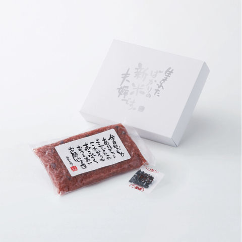 ■お祝い事に欠かせないお赤飯の引出物ギフトです。炊飯器にお米を入れ水を加えて炊くだけで簡単にふっくらお赤飯が炊き上がります。お米は国産米を使用しています。