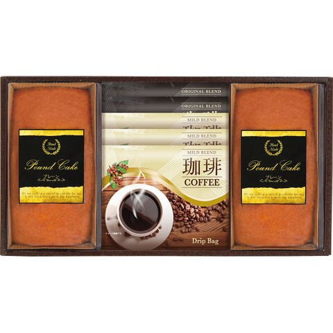 ●ドリップコーヒーマイルドブレンド7g×3、ドリップコーヒーオリジナルブレンド7g・パウンドケーキ(プレーン)×各2