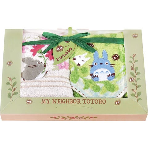 ■となりのトトロのウォッシュタオル2枚入りのタオルギフトです。かわいらしいデザインのアップリケ刺繍入りのジャガード織りタオルギフトです。開閉式のギフトボックスとなっております。