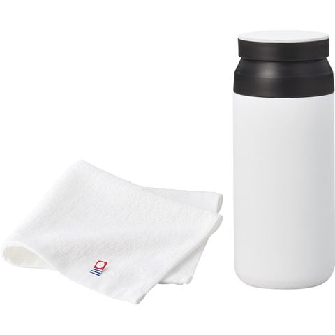 ■サーモボトルと今治タオルのセットです。ボトルは真空二重構造になっており飲み頃温度をキープします。