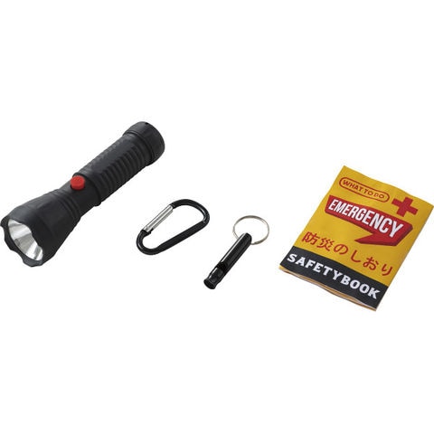 ●ボトル(容量=約600ml)・ライト(単4電池3本使用・別売)・レインポンチョ・カラビナ・アルミブランケット・ホイッスル・防災のしおり各1個※色指定不可