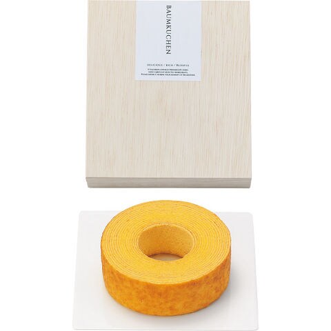 ■生クリームを使用して、ふんわりしっとりと焼き上げたバウムクーヘン。上品に木箱に入れてお届けします。