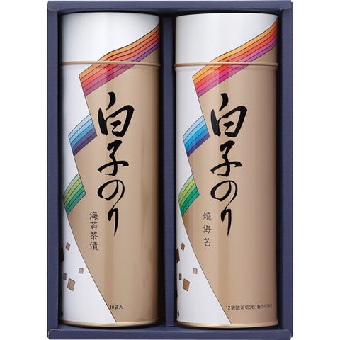 ■採れたての美味しさと品質にこだわった人気の詰合せ。白を基調に十二単をイメージした華やかで潔いデザインは白子のりの顔として親しまれています。
