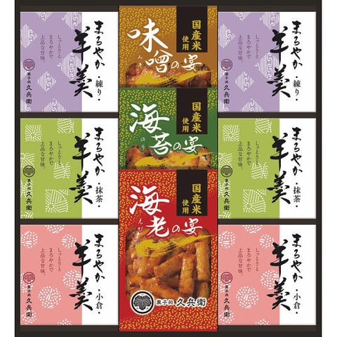 ●あられ(海老・海苔・味噌)各12g×各1、羊かん(抹茶・練り・小倉)各60g×各2