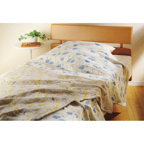 ■変わりゆく時代を生きる人たちへひとさじのやすらぎを。使うほどにやわらかい、4重ガーゼ。ガーゼ織で肌にもやさしく、一年を通して快適にご愛用いただけるふんわり心地よい厚みのガーゼケットです。