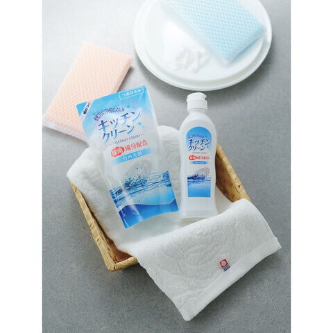 ●フェイスタオル(約34×70cm)・キッチンクリーン250ml・キッチンクリーン詰替200ml×各1、メッシュクリーナー×2