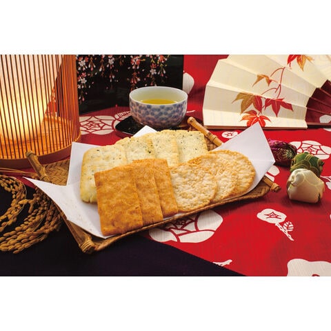 ●青さ海苔煎餅×6、柚子胡椒煎餅・海老カレー煎餅×各3