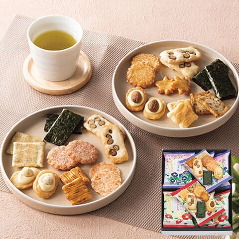 ■海苔、黒豆、アーモンド、チーズなど個性豊かなあられを、1袋に7種ずつ組合わせて入れた食べきりサイズのあられ詰合わせです。