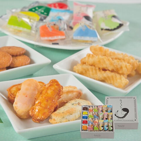 ■おかき・ひねり揚げ・ミレーフライのアソートギフトです、懐しい味や食感の違うお菓子など色々楽しめます。