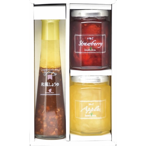 ●ジャム145g×2(いちご、りんご)、ドレッシング122ml(和風しょうゆ)