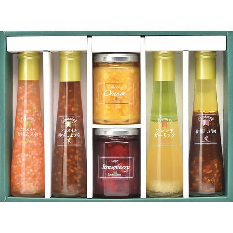 ●ジャム145g×2(オレンジマーマレード、いちご)、ドレッシング122ml×4(ノンオイル大根と人参、ノンオイルゆずしょうゆ、フレンチガーリック、和風しょうゆ)