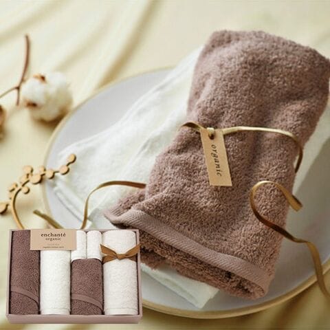 アンシャンテオーガニック スリムバス・フェイスタオル・タオルハンカチセット ココアブラウン 44080 【_