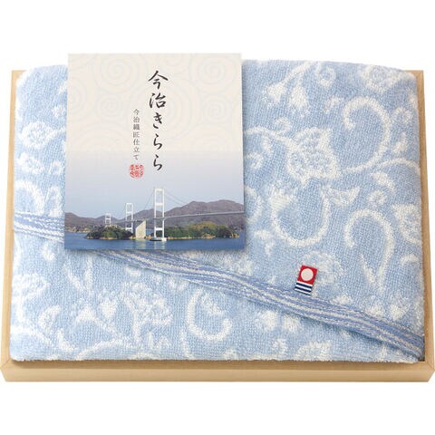 今治タオル 今治きらら フェイスタオル 木箱入 ブルー 53016 【_