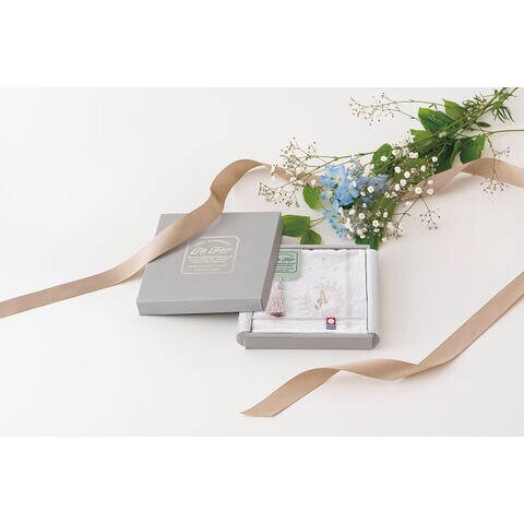 ■ブライダルやフォーマルなプチギフトにも。上品で光沢のあるイニシャルやラッキーモチーフの刺繍がポイント。特別感を演出するギフト仕様の今治産のタオルハンカチは、男女年齢問わず、幅広い方への贈り物におすすめです。
