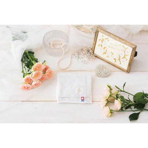 ■ブライダルやフォーマルなプチギフトにも。上品で光沢のあるイニシャルやラッキーモチーフの刺繍がポイント。特別感を演出するギフト仕様の今治産のタオルハンカチは、男女年齢問わず、幅広い方への贈り物におすすめです。