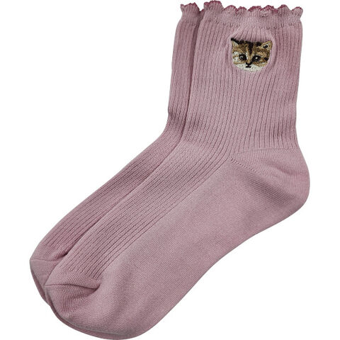 ■ベーシックなリブ編みにかわいいヌネットの刺繍がポイントのロークルー丈のソックス
