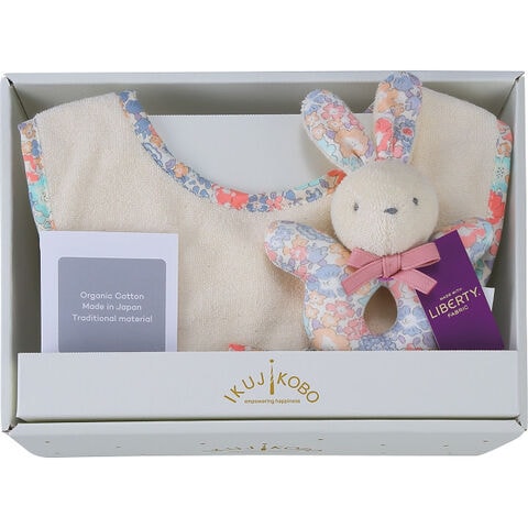 ■人気のリバティプリントを使用したスタイとラトルのギフトセットです。専用ボックスに入った人気のモデルです。