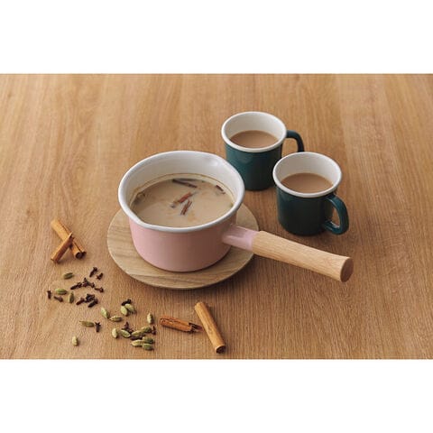 ■ホットミルク、チャイ、スープ、スイーツの下ごしらえ等に丁度よいサイズです。ホーローは衛生的であり離乳食づくりにも安心です。 つまみは指先が直接フタに触れにくい形状で、熱を伝えにくい天然木となっております。