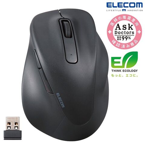 ■整形外科医との共同開発により自然な手の形のまま使える、握らないマウス“EX-G”シリーズ。手首と指を動かす筋に着目し、マウスを動かす際にかかる身体の負担を極限まで抑えた無線2.4GHz5ボタンマウスです。