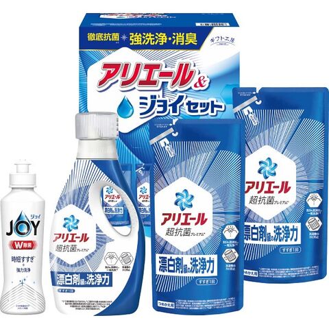 ■菌を寄せ付けないクリーンギフト。抗菌力・洗浄力に優れたアリエールとダブル除菌のジョイをセットしました。