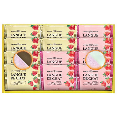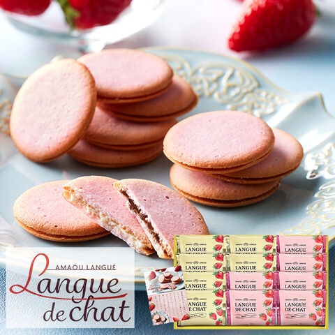 ■福岡県産あまおうを使用したいちごピューレを練り込んだサクサクのラングドシャクッキーでオリジナルのミルクチョコとホワイトチョコをサンドしました。優しい甘さと軽い食感、滑らかなくちどけをお楽しみください。