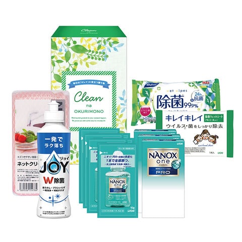 ●除菌ジョイコンパクト(170ml)×1、NANOXonePRO(10g×2)×3、キレイキレイ除菌ウェットシート(アルコールタイプ)(1枚)×1、リファイン24h抗菌ノンアルコール除菌ポケットウェットティッシュ(10枚)×1、ネットクリーナー×1