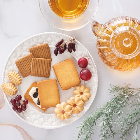 ●レーズンサンド×4、紅茶リーフ×10、花型イチゴ×10、アメリカン×10