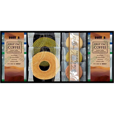 ●ミルクバウムクーヘン×1、宇治抹茶バウムクーヘン×1、ドトールドリップコーヒー(深煎りブレンド×4、キリマンジャロブレンド×2)、ミニバウムクーヘン(北海道生クリーム・ベルギーショコラ・宇治抹茶)×各1