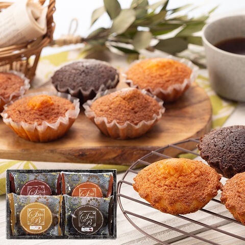 ●マドレーヌ(メープル):×1個、マドレーヌ(アップル):×1個、マドレーヌ(オレンジ):×1個、マドレーヌ(チョコ):×1個