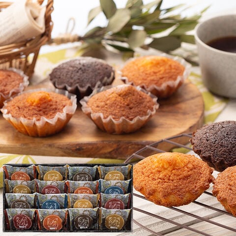 ●マドレーヌ(メープル):×3個、マドレーヌ(ミルク):×2個、マドレーヌ(カフェラテ):×2個、マドレーヌ(アップル):×3個、マドレーヌ(オレンジ):×3個、マドレーヌ(チョコ):×3個