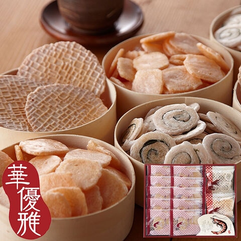 ●赤えびせんべい(1枚)×10、えびせん(うずまき)10g×1、えびせん(えび松風)10g×1