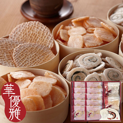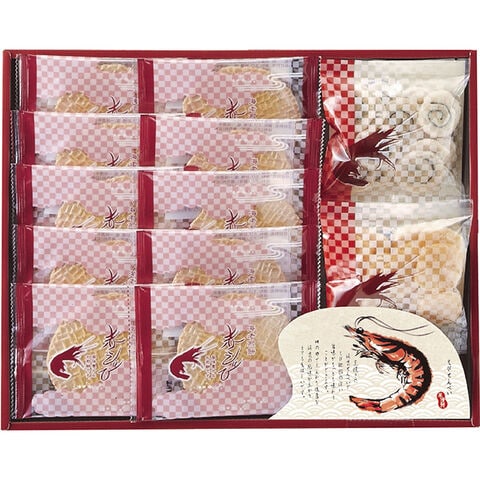 ●赤えびせんべい(1枚)×20、えびせん(うずまき)10g×2、えびせん(えび松風)10g×2