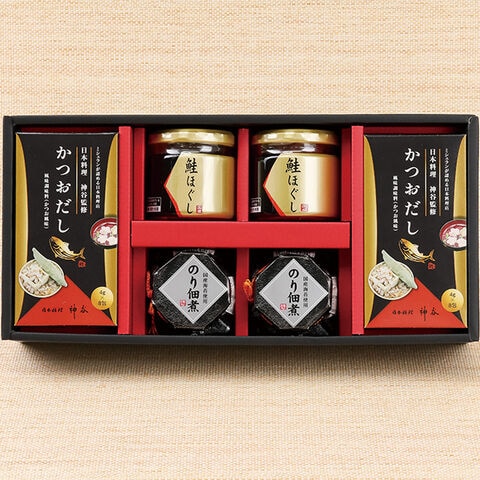 ●鮭ほぐし50g×2・のり佃煮80g×2・かつおだし(4g×8)×2