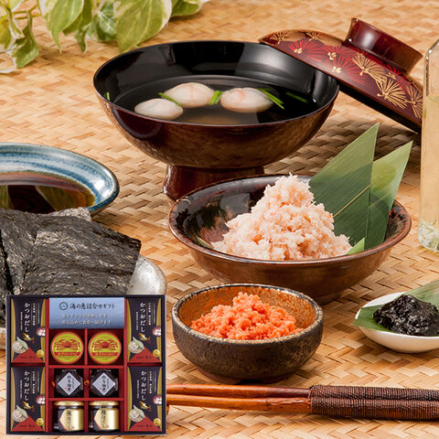 ●鮭ほぐし50g×2・のり佃煮80g×2・かつおだし(4g×8袋)×4・紅ずわいがにほぐし身55g×2