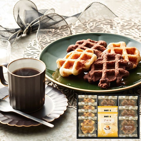 ●ドリップコーヒー7g×2、ベルギーワッフル(プレーン・チョコ)×各4